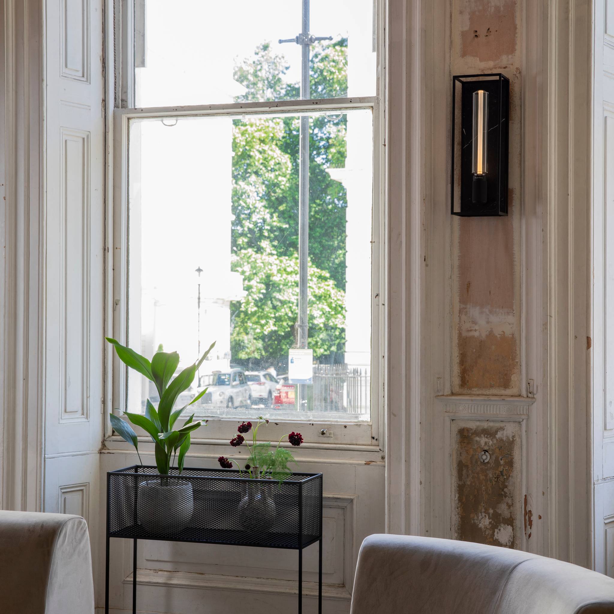 A planter made from matte black steel and perforated mesh. The planter is finished with our signature solid metal coin screws, choose from steel and brass (both included). The planter has a solid steel base to collect any water overspill and can also be used to store books and other accessories. Can be placed on it’s own or side-by-side to create larger arrangements.