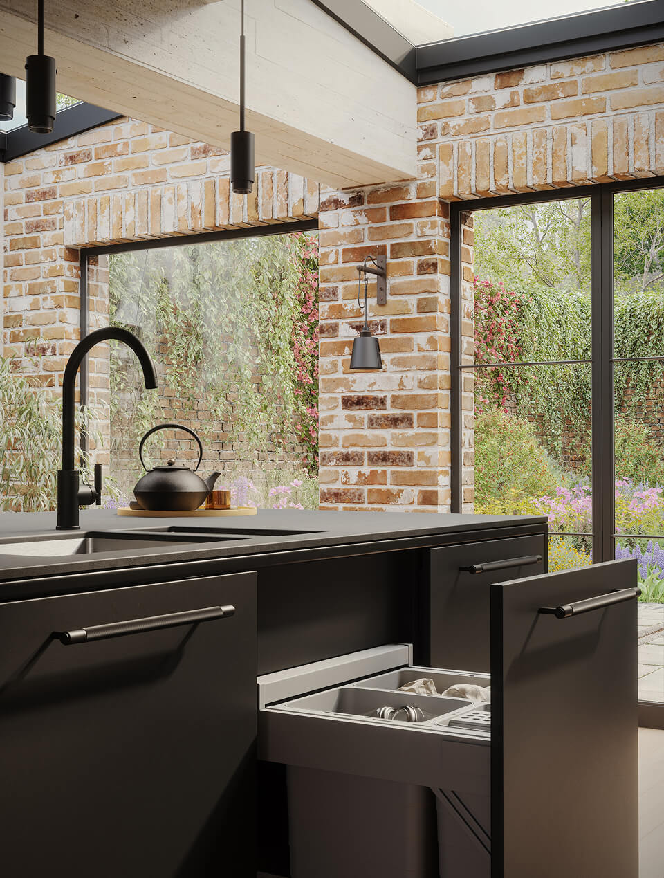 Drawer stacks, slim cupboard fronts